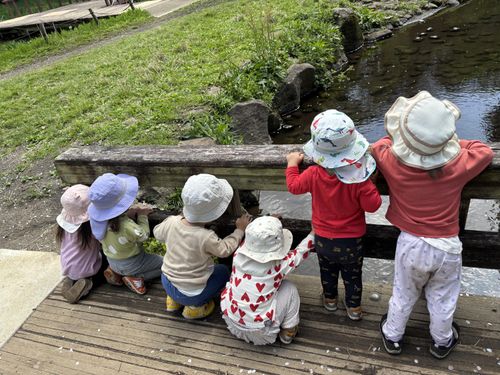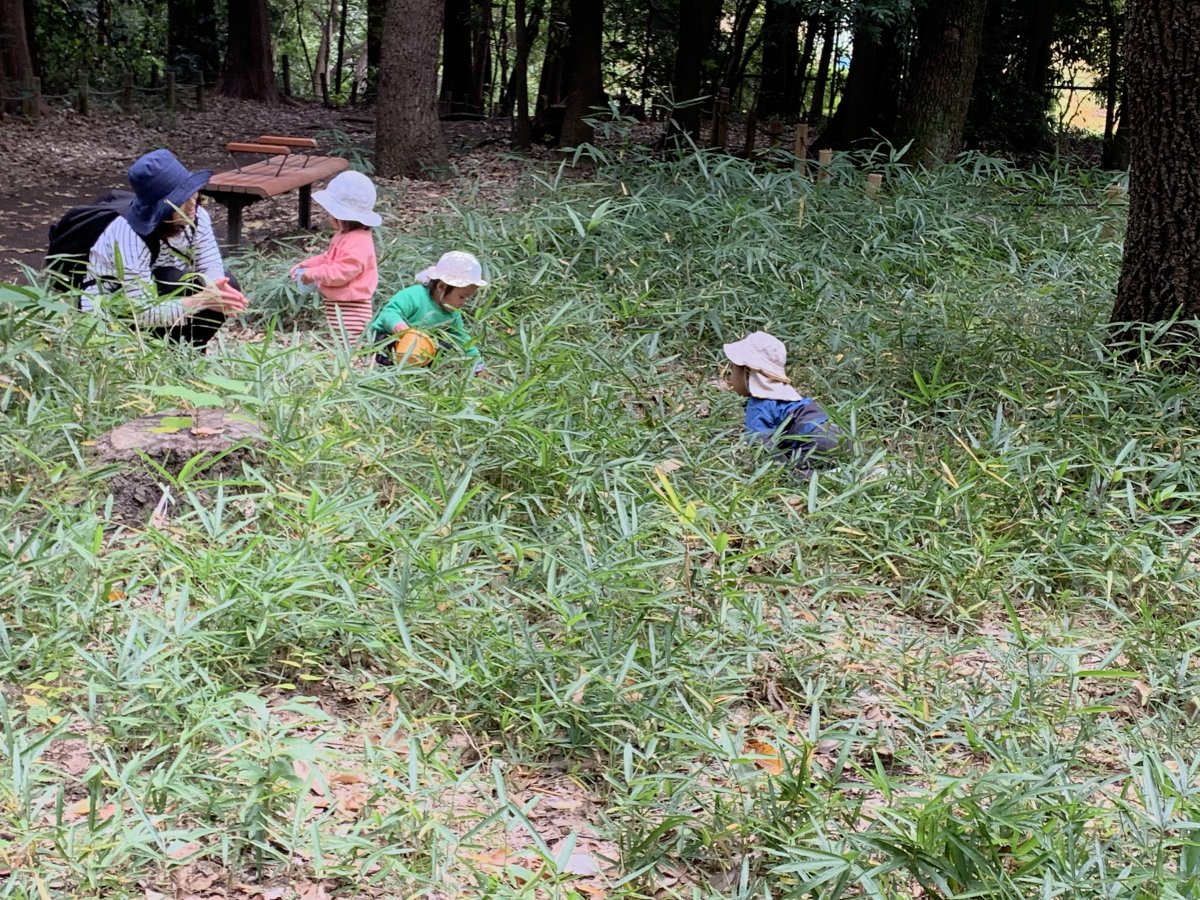 日々、自然の中へ出かけていき、五感を通した活動をしています。